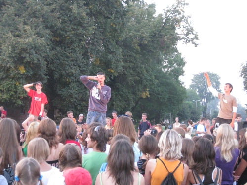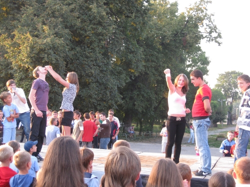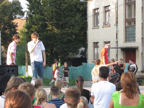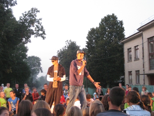 Місцева група брейк-дансерів запропонувала спільний танець, спільний виступ. Молодь буквально обступила сцену зі всіх сторін, було важко щось розглядіти! Інтерес був максимальний.