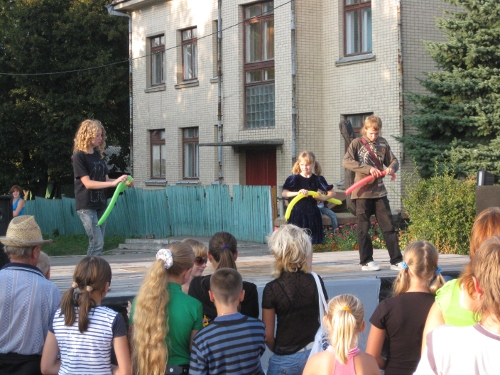 Конкурс з надуванням кульок: треба було носом надути кульку, доки вона не лопне. Да, організатори трохи перестарались з розмірами кульок, але учасники конкурсу мужньо пройшли це випробування та отримали свої призи.